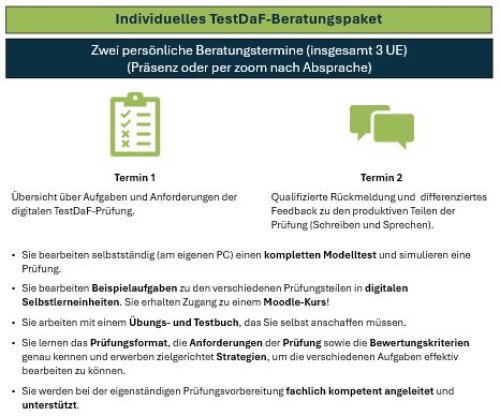 1. Nach einer ersten Klärung per E-Mail/zoom/telefonisch, ob das Angebot für Sie das richtige ist, füllen Sie das Anmeldeformular zum TestDaF-Beratungspaket aus.